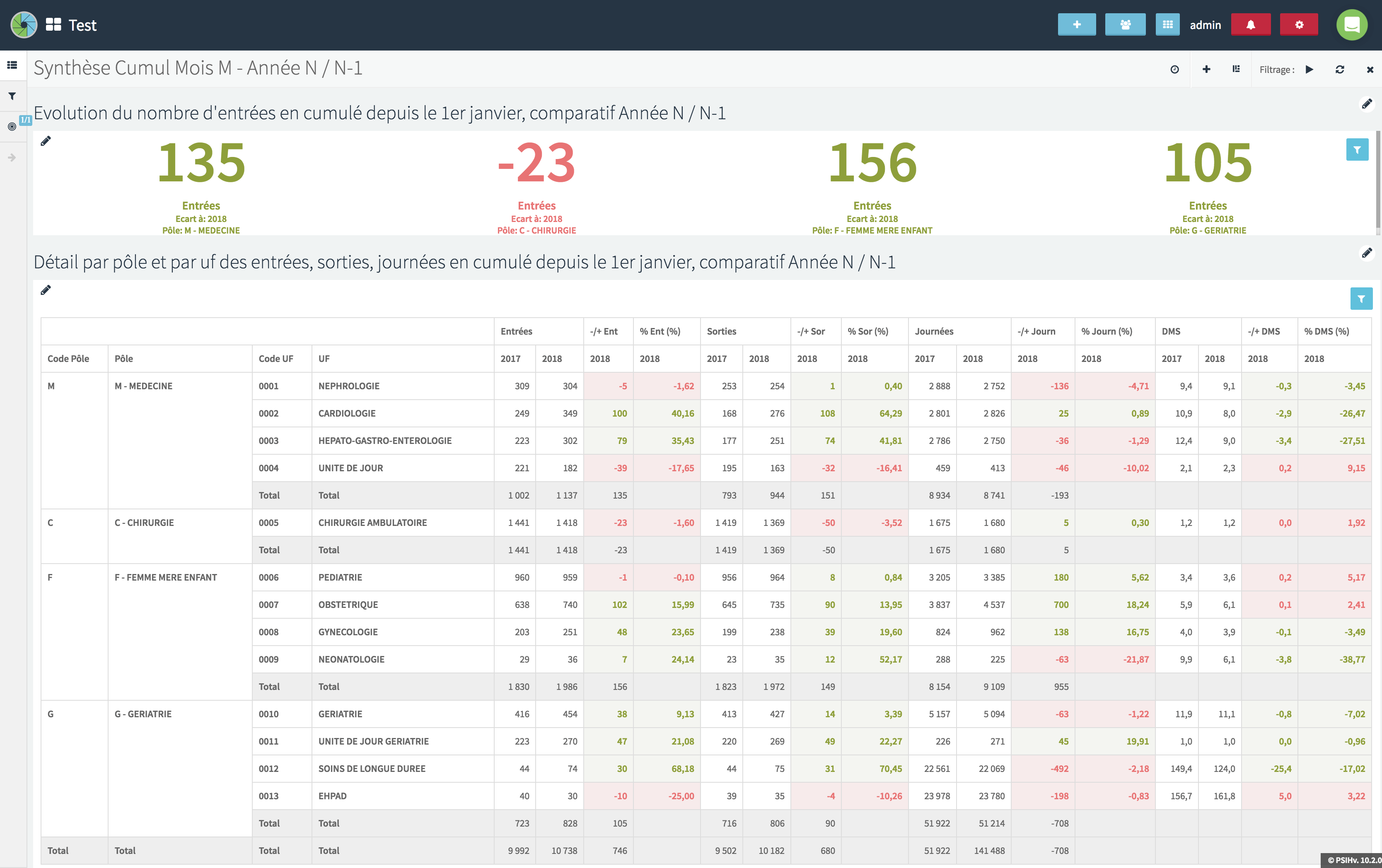 En effet, celui-ci offre aux utilisateurs un détail fin par pôle, entre l’année N-1 et l’année N, en cumulé depuis le 1er janvier: